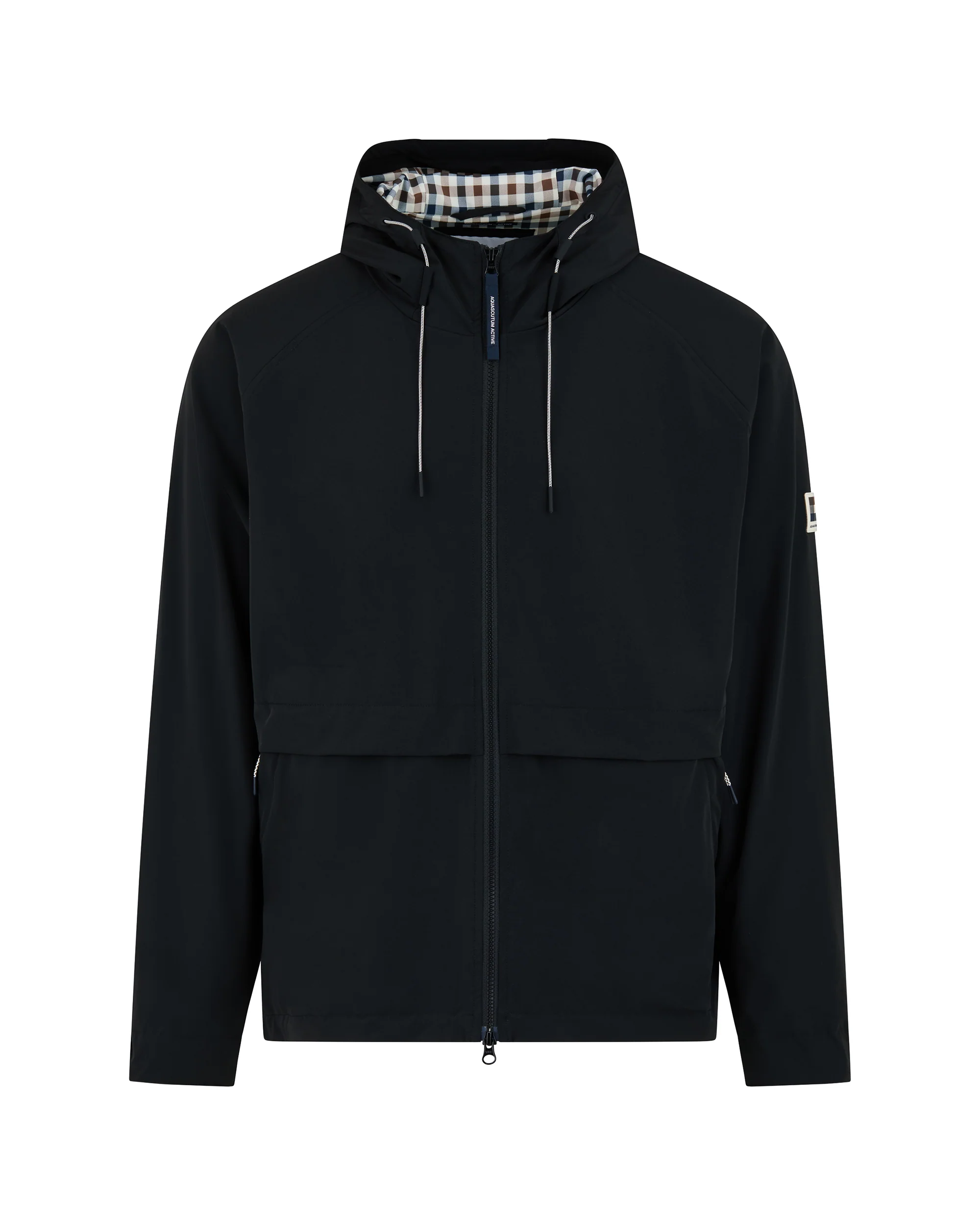 Dankzij de multilayer constructie, verstelbare capuchon met Aquascutum Active Club Check detail en dubbele YKK® ritssluiting combineert deze jas maximale functionaliteit met een moderne, minimalistische uitstraling. De verstelbare zoom en comfortabele regular fit maken hem perfect als tussenjas voor lente en herfst of als sportieve outdoor jas in de stad.