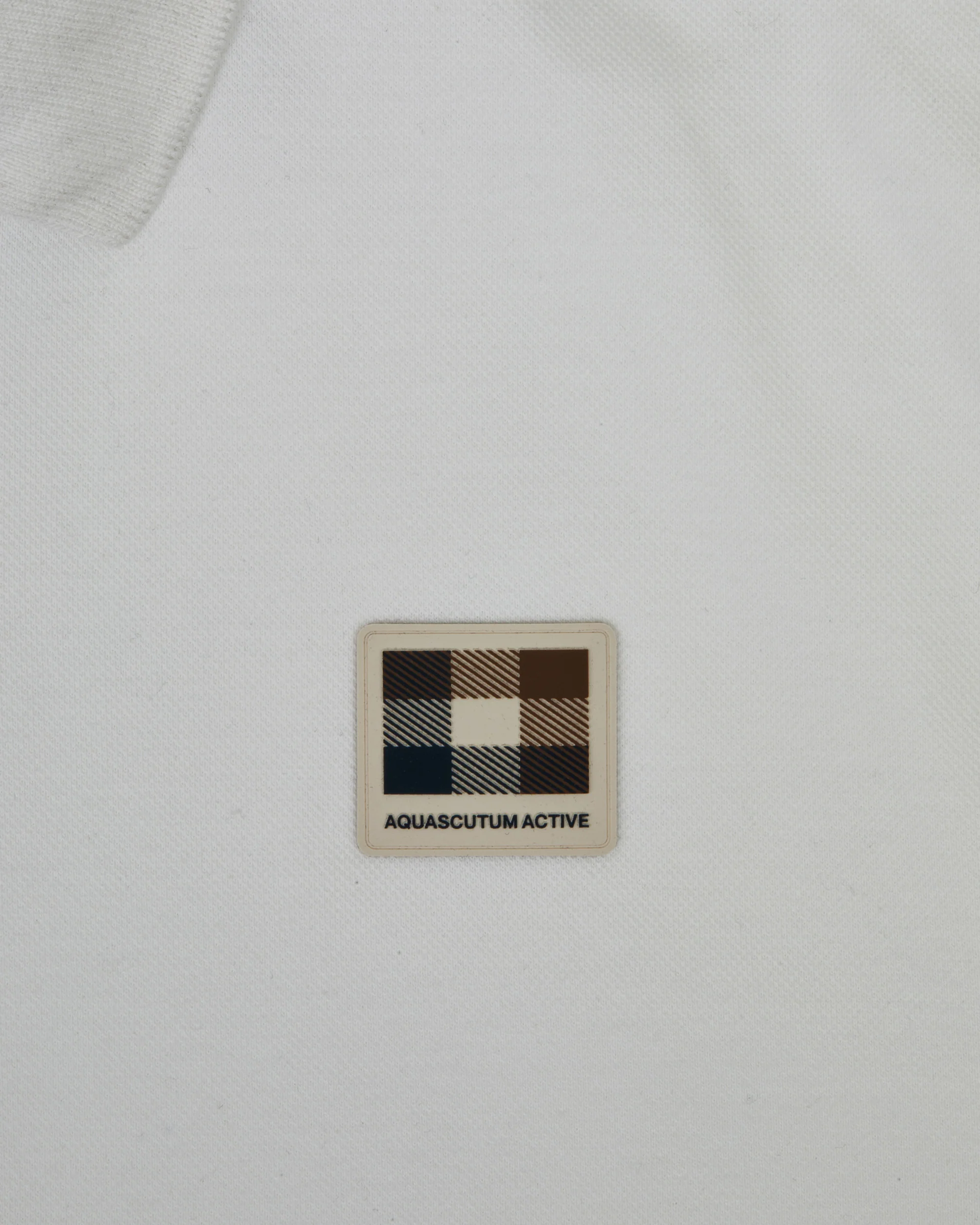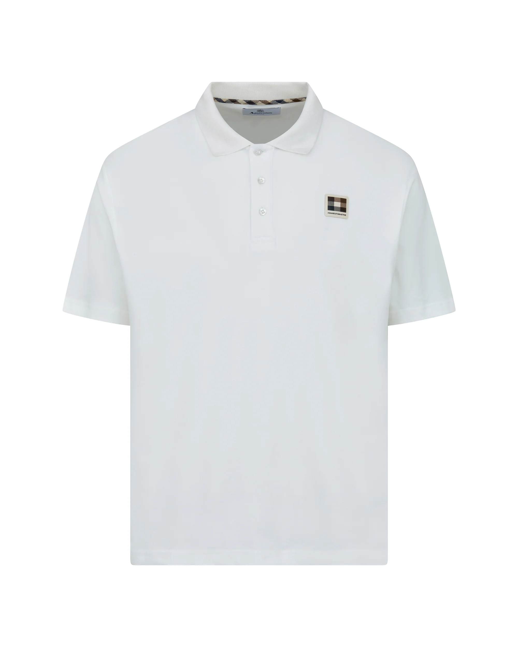 Het ontwerp heeft een klassieke geribde kraag en een drieknoopsluiting, wat zorgt voor een verfijnde en sportieve uitstraling. De iconische Club Check Aquascutum Active badge op de linkerborst geeft de polo een herkenbare heritage touch.