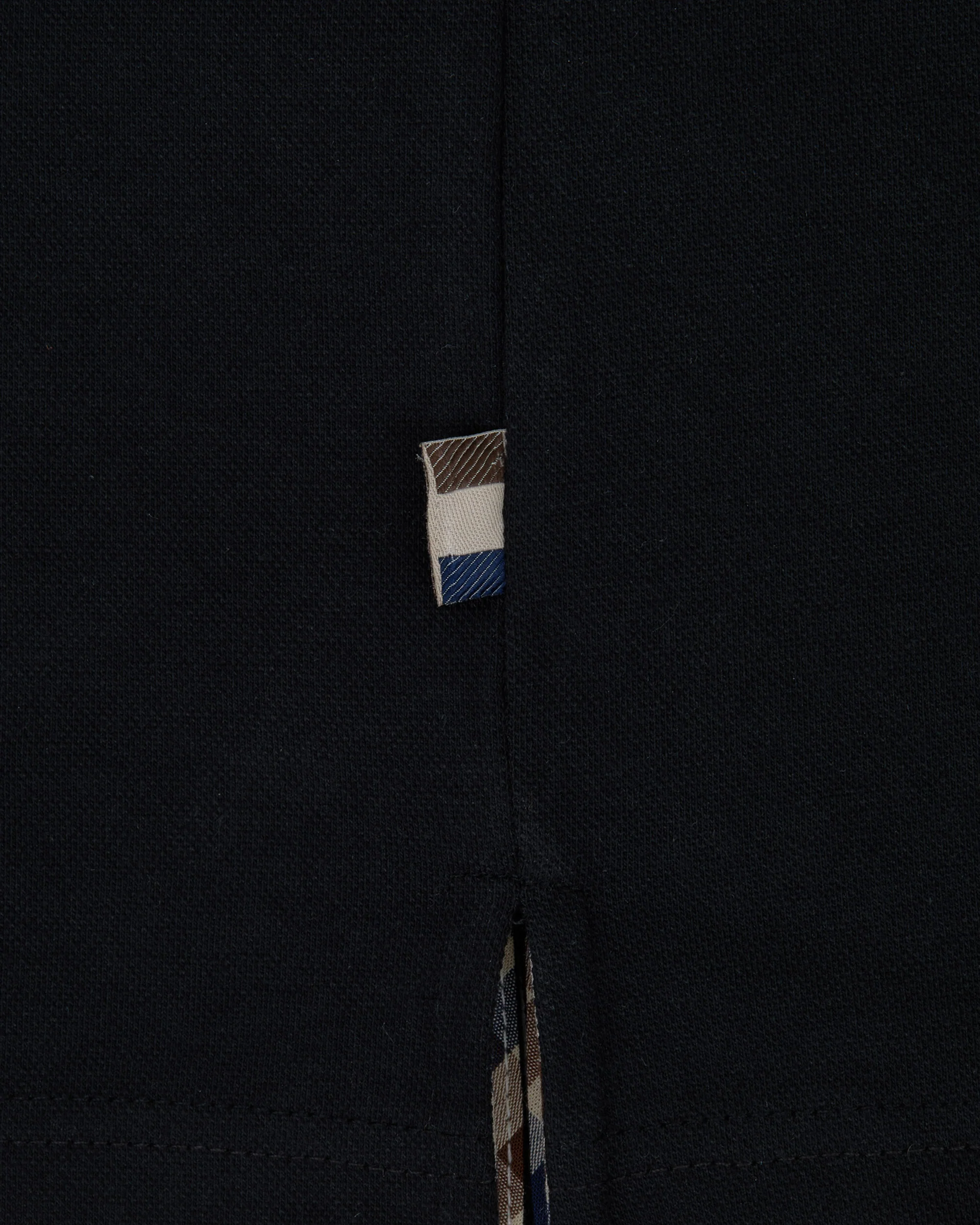 Het ontwerp heeft een klassieke geribde kraag en een drieknoopsluiting, wat zorgt voor een verfijnde en sportieve uitstraling. De iconische Club Check Aquascutum Active badge op de linkerborst geeft de polo een herkenbare heritage touch.