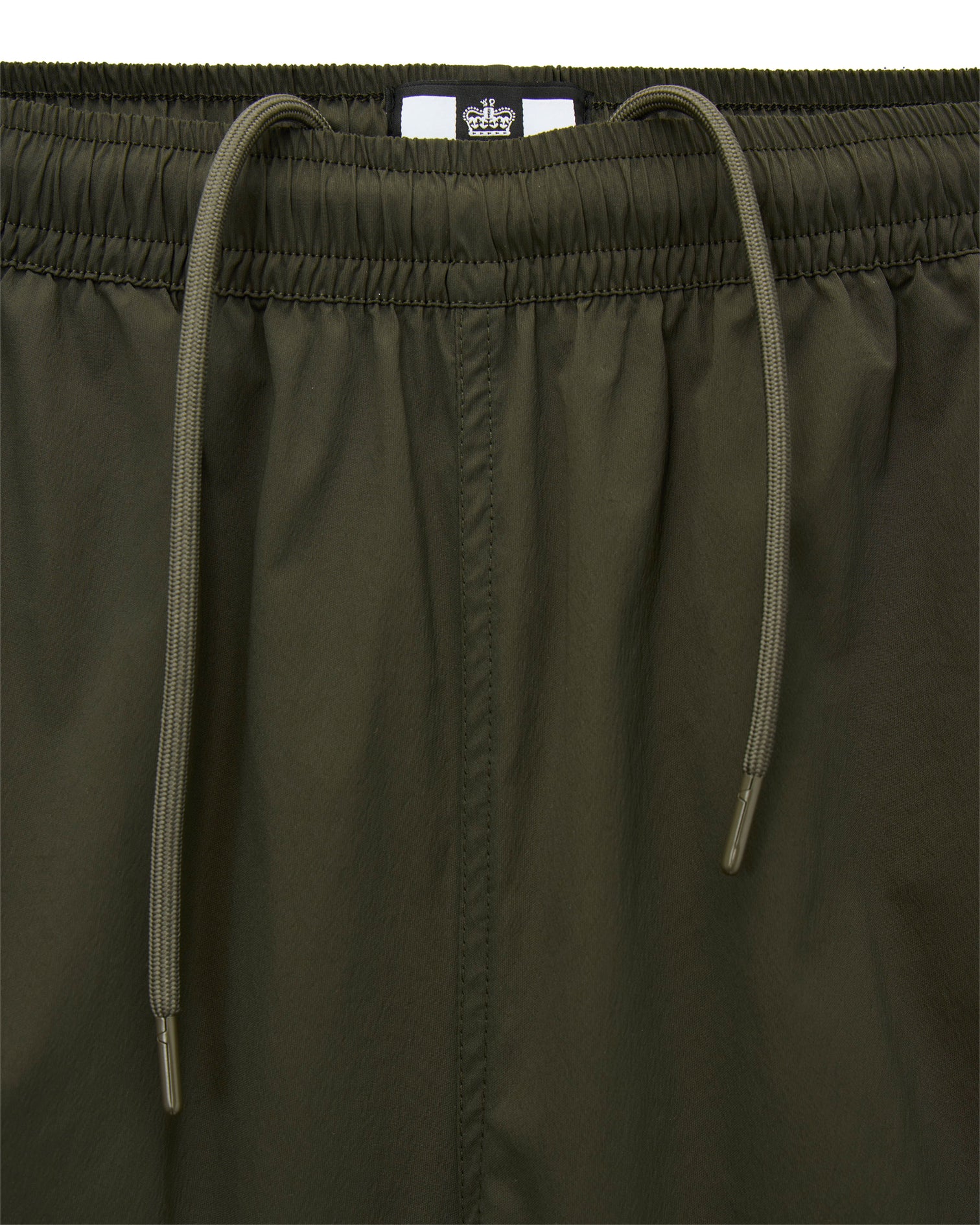 De elastische tailleband met interne trekkoord zorgt voor een comfortabele en verstelbare pasvorm. Praktische details zoals zijzakken met verborgen drukknoopsluiting, schuine cargozakken met klep en WO branded press studs, en een achterzak met blinde drukknoop maken deze short functioneel én stijlvol. De afneembare WO badge op de beenzak geeft een herkenbare, premium touch.