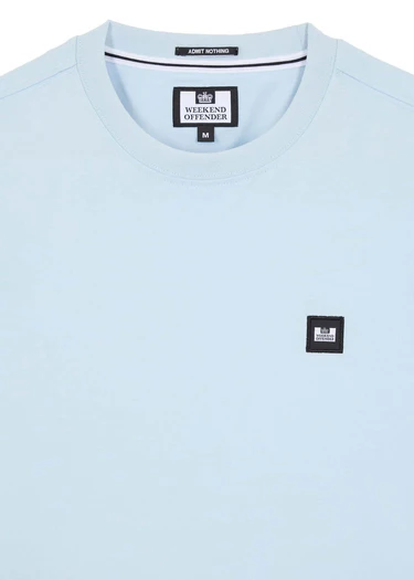 Ronde hals t-shirt van Weekend Offender met kleine merk applicatie op de borst. Gemaakt van een dunne 200gsm 100% katoen.