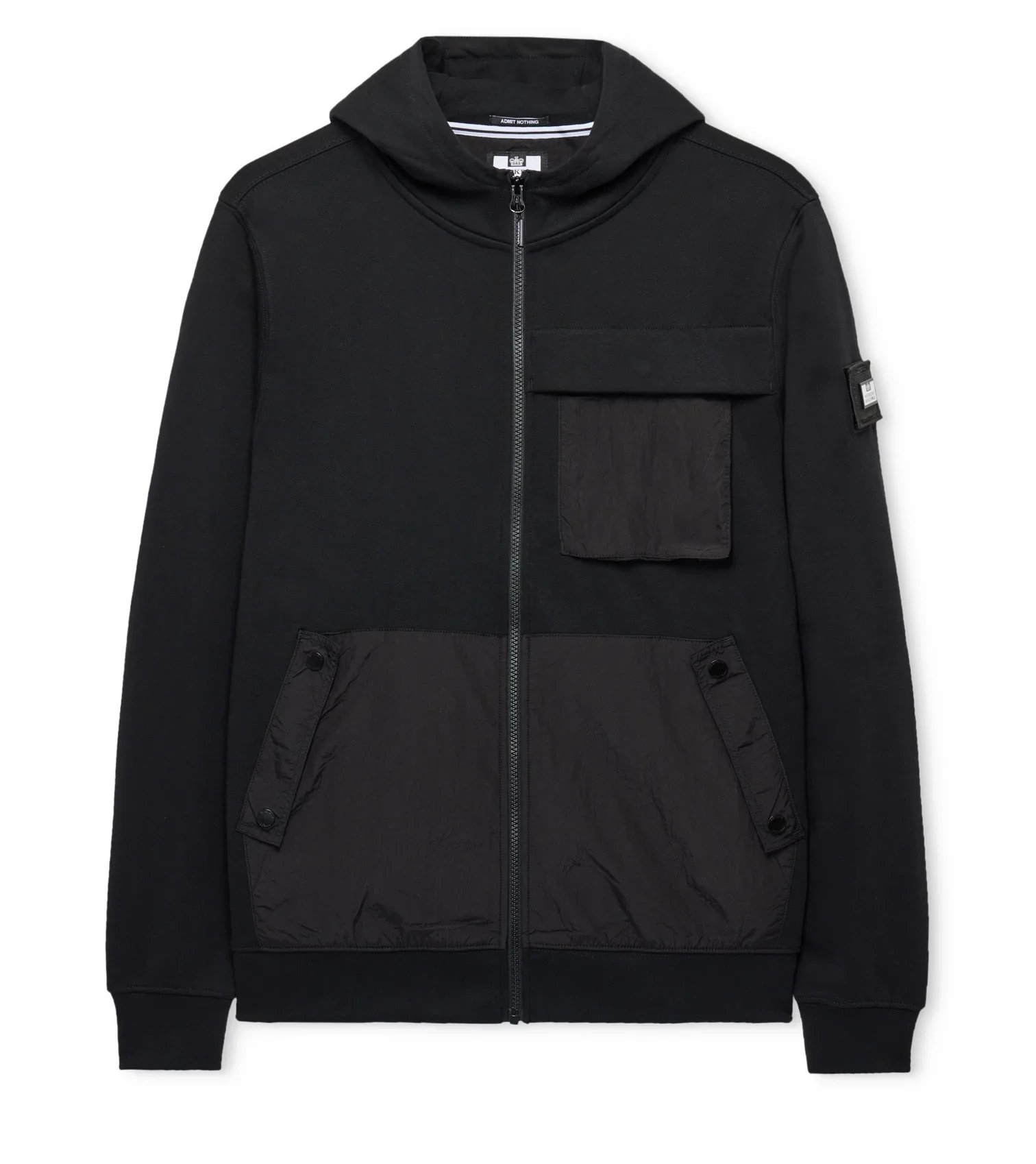 De hoodie is uitgerust met een driedelige capuchon en een stevige ritssluiting met WO branded zipper. De opvallende 100% nylon parachute kangoeroezak met kleppen en branded drukknopen geeft een technische, moderne look. Daarnaast beschikt de hoodie over een chest pocket met 3D exposed pocket bag voor extra detail en functionaliteit. Comfortabele ribboorden aan de mouwen en zoom zorgen voor een perfecte pasvorm, terwijl de afneembare WO badge op de mouw de herkenbare Weekend Offender stijl compleet maakt.
