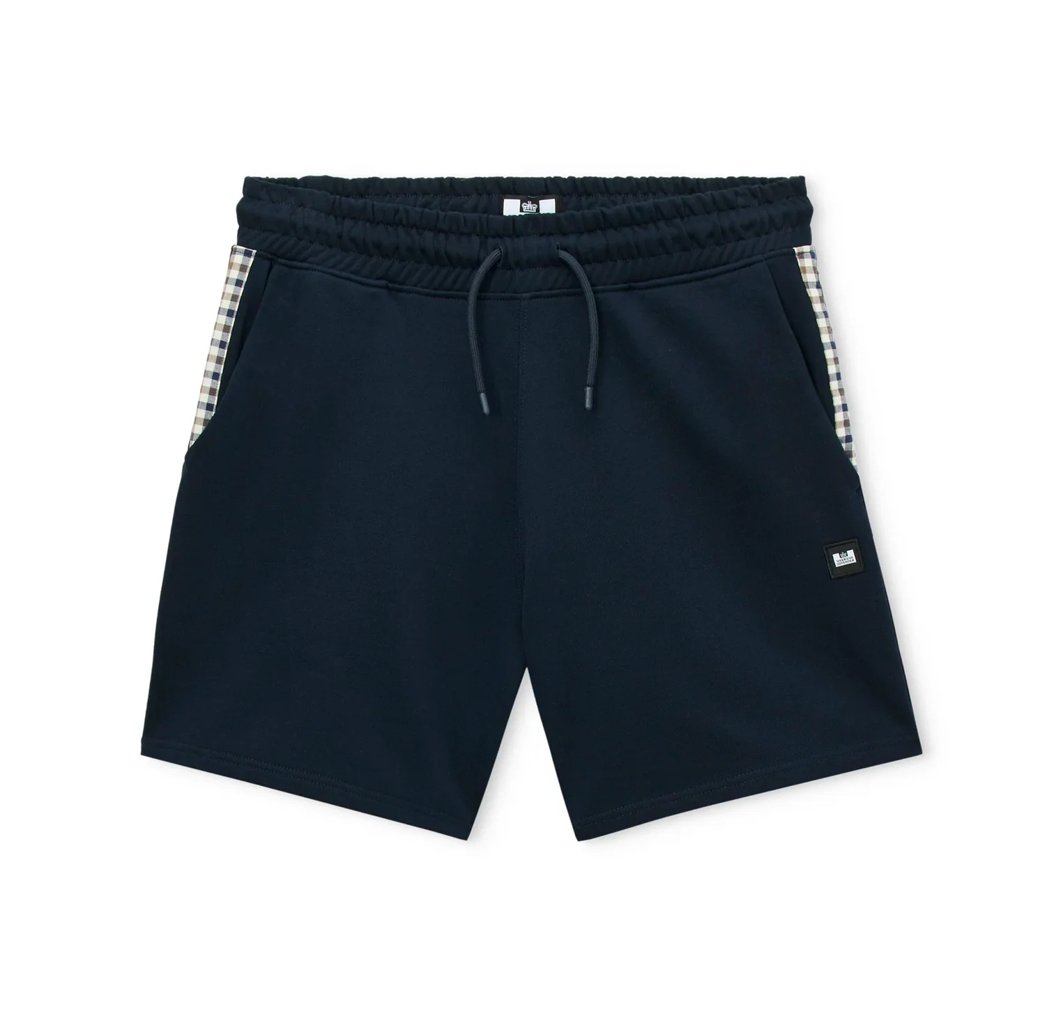 De elastische tailleband met trekkoord biedt een comfortabele en verstelbare pasvorm. Voorzien van schuine zijzakken met verborgen drukknoopsluiting en een stijlvolle mid house check voering. Aan de achterkant zit een nette welt pocket met verborgen sluiting. Afgewerkt met een subtiele WO badge op het been.