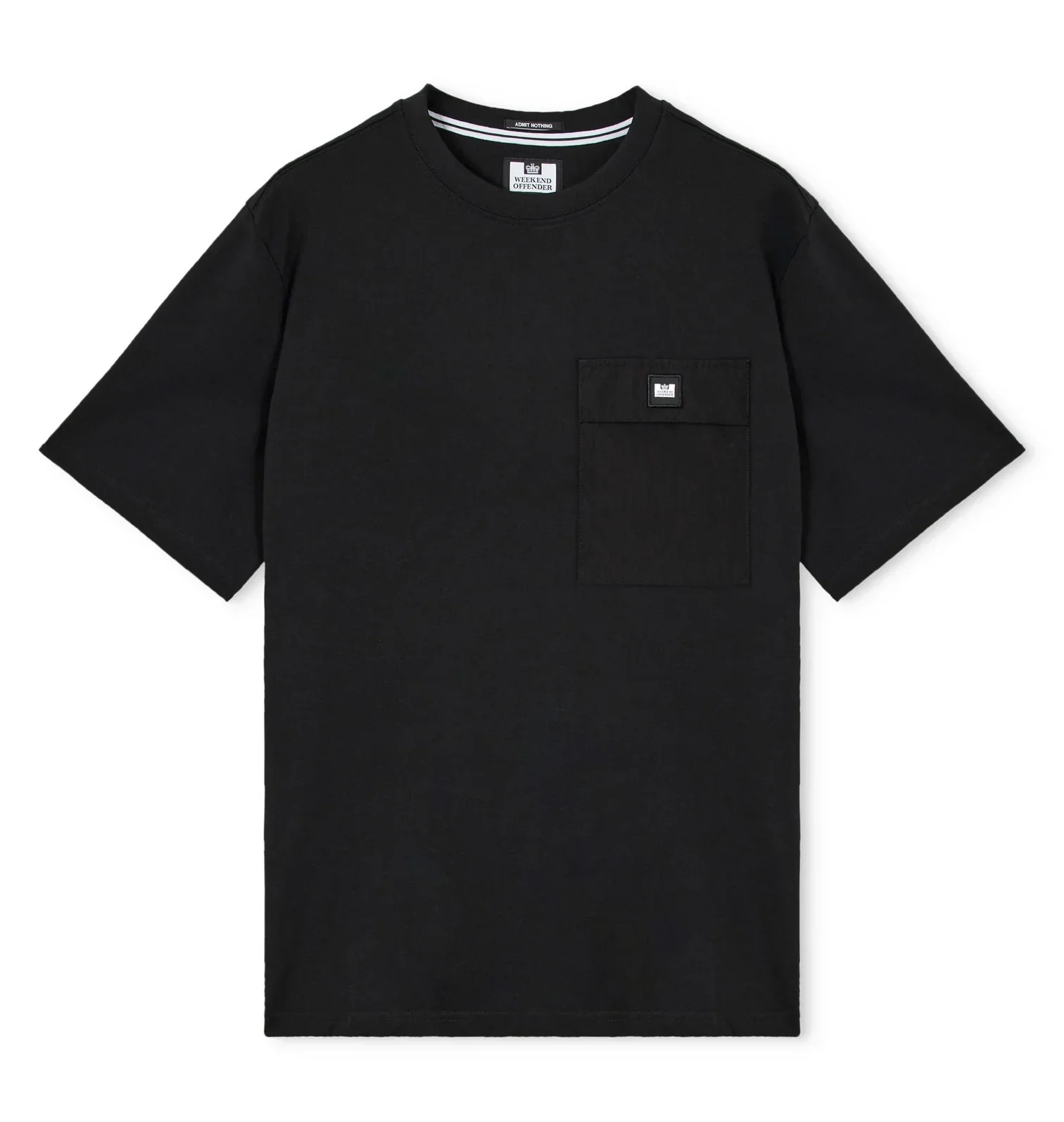 Ronde hals t-shirt van Weekend Offender met nylon borstzakje ton-sur-ton kleur met merk applicatie op de borst. Gemaakt van een dunne 200gsm 100% katoen.