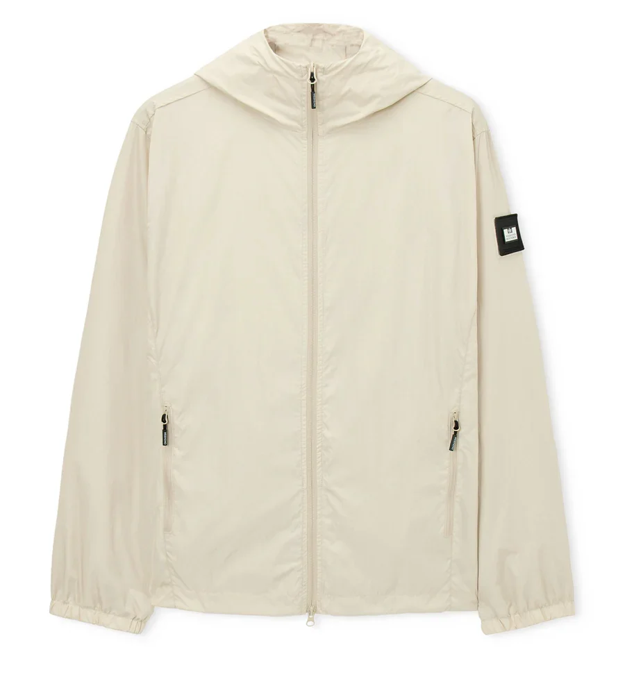 Nylon hooded jacket met mest voering en waterafstotende coating van Weekend Offender met afsluitbare steekzakken, en metalen, afneembare  logo badge op de arm. En een verborgen facemask in de kraag.