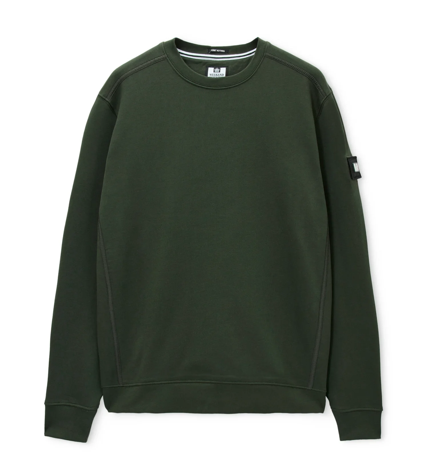 Ronde hals trui van Weekend Offender. Gemaakt van een mooie gekamd fleeceback katoen. Met een afneembare en logo badge op de arm.