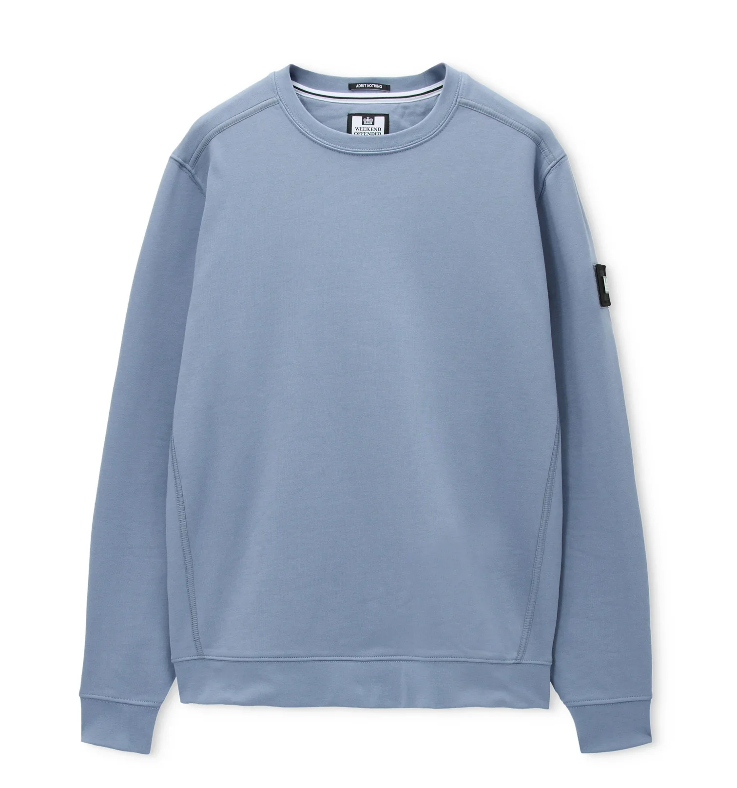 Ronde hals trui van Weekend Offender. Gemaakt van een mooie gekamd fleeceback katoen. Met een afneembare en logo badge op de arm.