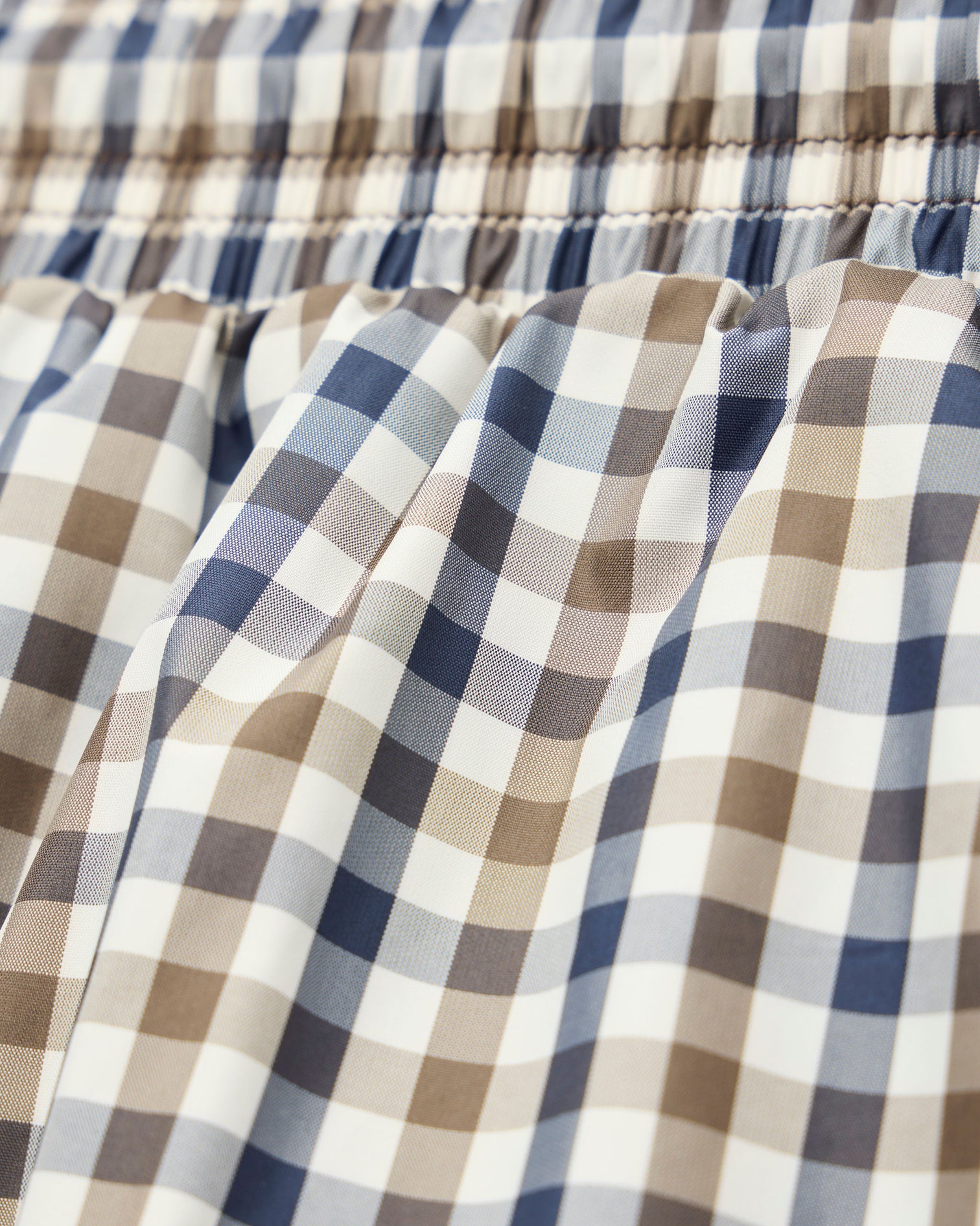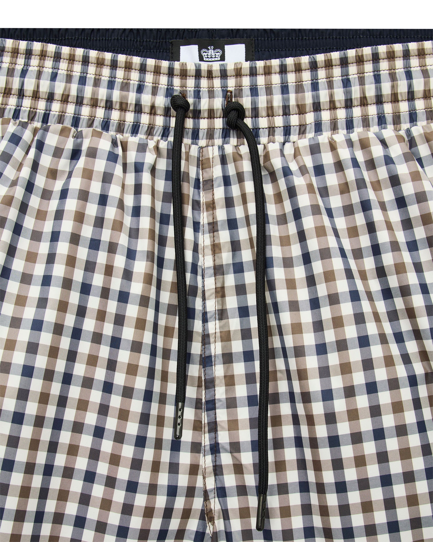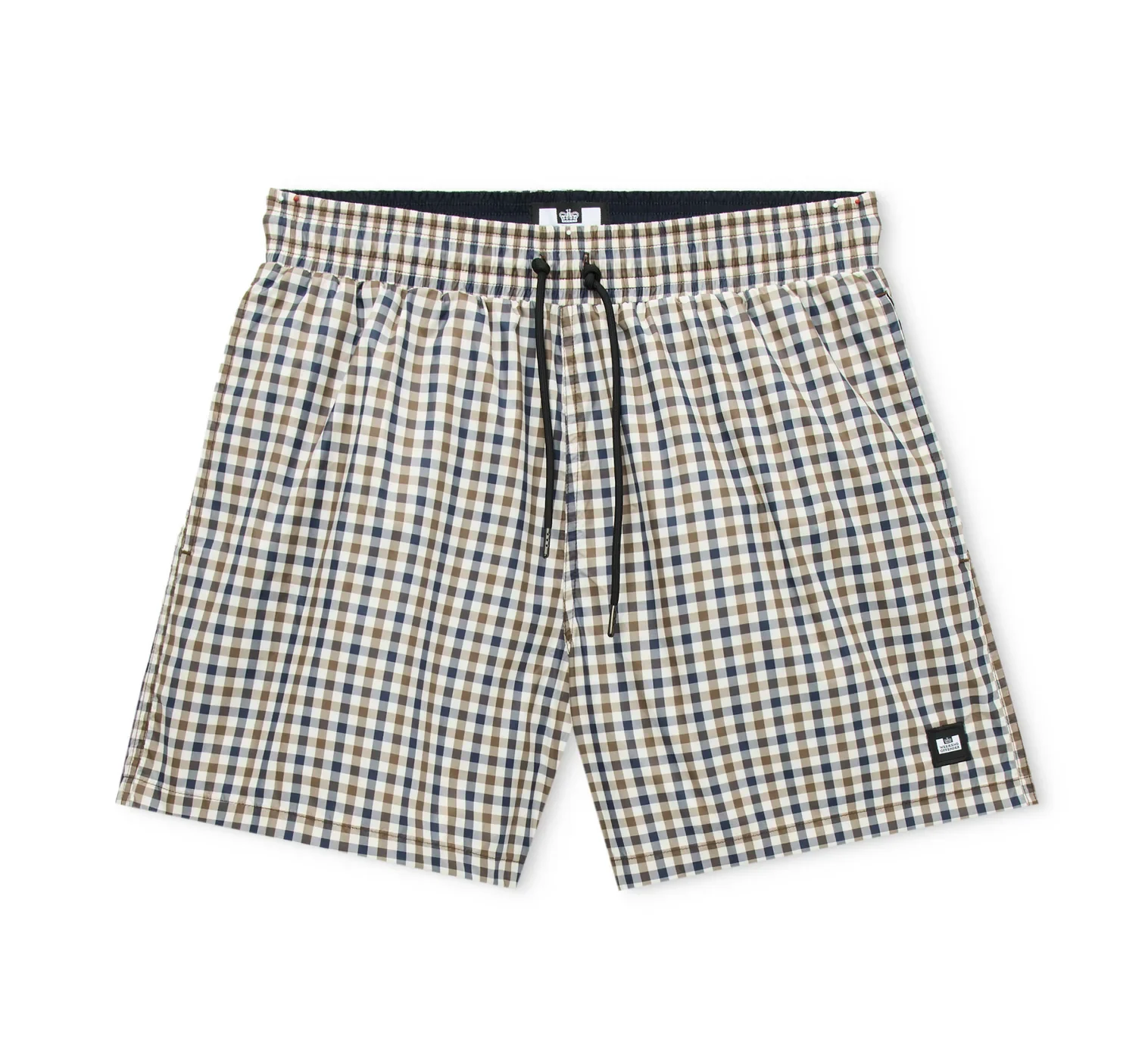 Geruite zwembroek Van Weekend Offender met twee steekzakken, achterzak en binnenbroekje. Op de pijp zit het bekende ‘Prison Logo”
